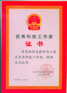 陳昆柏同誌被(bèi)評為上城區優秀科技工作者(zhě)
