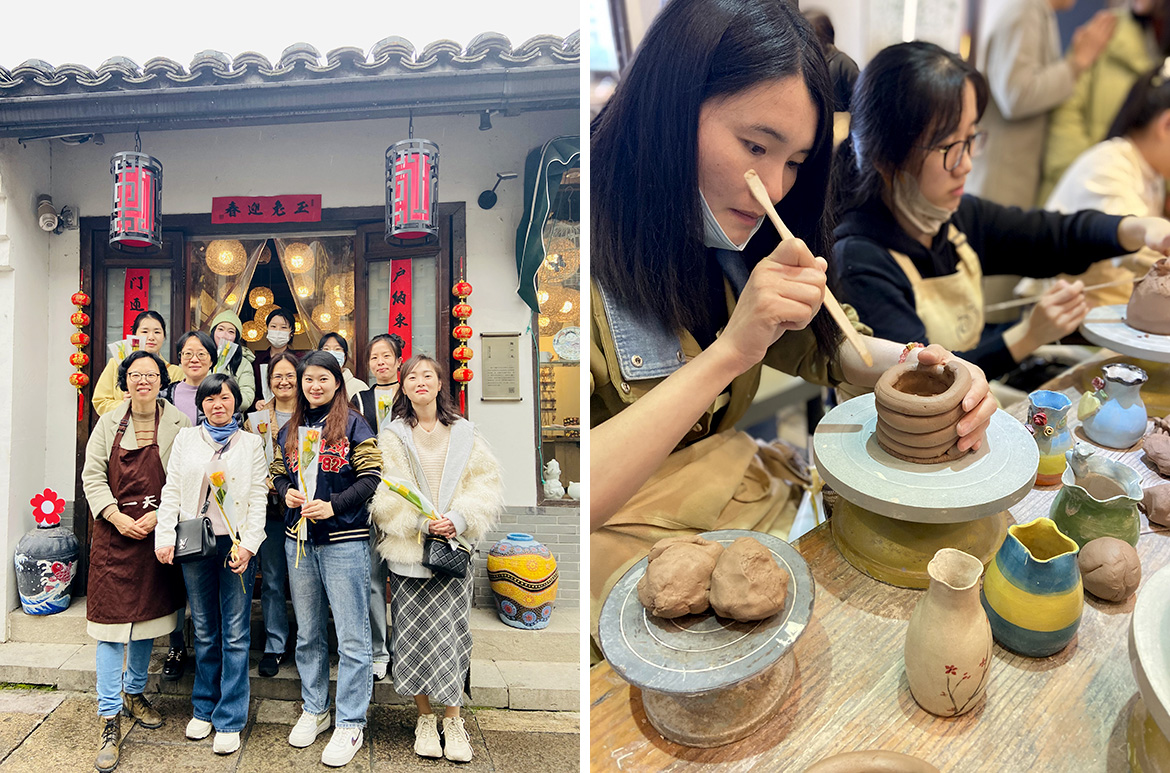 大運河貫穿南北,它南(nán)越長江,流經江蘇、浙江。北越黃河(hé),流(liú)經魯冀,煙波浩渺(miǎo)幾千裏(lǐ)。這是與(yǔ)橫貫東西的萬(wàn)裏長城並稱於世的偉大奇跡。仰望,晴空萬裏,京杭大運河如飄蕩的(de)碧玉帶,機動船破浪航行(háng)。兩(liǎng)岸,楊(yáng)柳在迎著春風吐翠,水麵(miàn)波光粼粼,古色古香的小河直街人山人海。值此三八國(guó)際婦女節,在這個被“寵愛”的(de)日子(zǐ)裏,公司工會組(zǔ)織全體女員工“品運河文化(huà),做手工陶藝”活(huó)動。忘卻煩惱(nǎo)記錄運河沿途的春日(rì)美景,親手製(zhì)作(zuò)屬(shǔ)於自己的陶藝作品,心(xīn)情隨春天一同蘇醒。