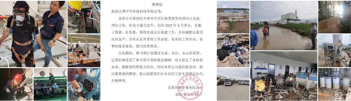 1月24日,公司收(shōu)到了(le)五常深能環保有限公司的“感謝信”,對公(gōng)司承接的五(wǔ)常生活垃圾汙水(shuǐ)處理站(zhàn)項目及災後重建中的優異表現給予了充分的肯定(dìng)和讚賞(shǎng),對公(gōng)司認(rèn)真(zhēn)負責的工作態度、務實的工(gōng)作作風,對項目部專業、專注、專心的敬業(yè)精(jīng)神(shén)給予了高度評(píng)價和真誠謝意。這一份來信,就象冬天裏的一把火,點(diǎn)燃了(le)公司2024年的興旺開端。