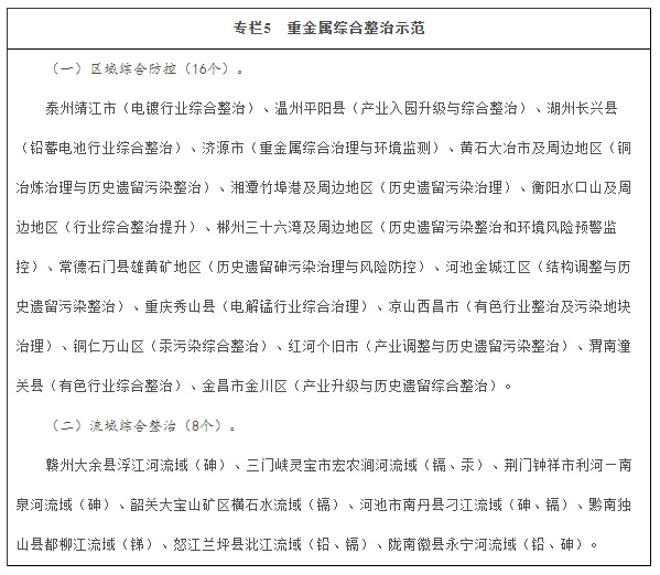 深化(huà)重點區域分類防控(kòng)。重金屬汙染防控重點區域製定實施重金屬(shǔ)汙染綜合防治規劃,有效防控環境風險和改善區域環境質量,分區指導、一區一策,實施差別化防控管理,加快(kuài)湘江等流域、區域突出問題綜合整治,“十三五”期(qī)間,爭取(qǔ)20個左右地區退出重點區域。在江蘇靖江市、浙江平陽縣等16個重點區域和江西大(dà)餘縣浮江河流域等8個流域(yù)開展重金屬汙染綜(zōng)合整治(zhì)示範,探索建立區域和流域重金屬汙染治理與風險防控的技術和(hé)管理體係。建立“錳三角”(錳(měng)礦(kuàng)開采和生產過程中存(cún)在嚴重環境汙染問題的重慶市秀山縣、湖南省花垣縣、貴州省鬆桃縣三個縣)綜合防控協調機製,統一製定綜合整治規(guī)劃。優化調整重點(diǎn)區域(yù)環境質量監測點位,2018年底前(qián)建成全國重金屬環境監測體係。